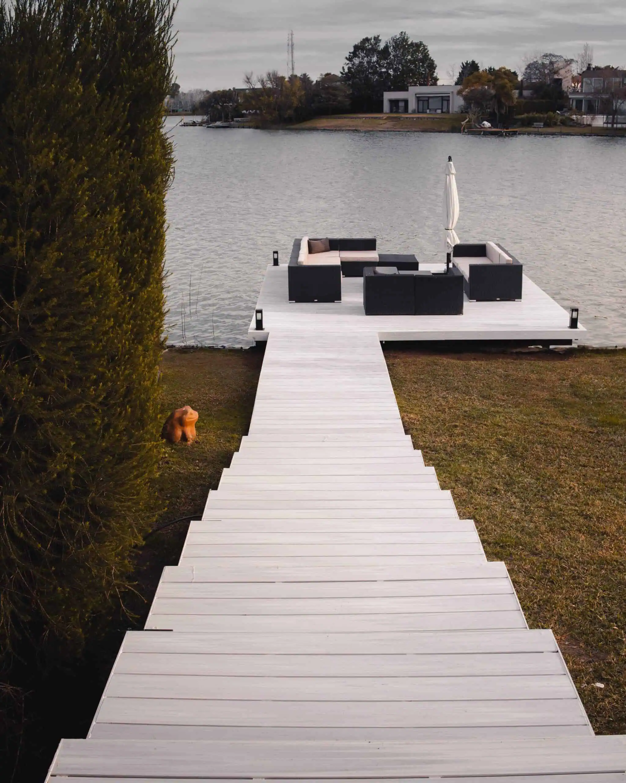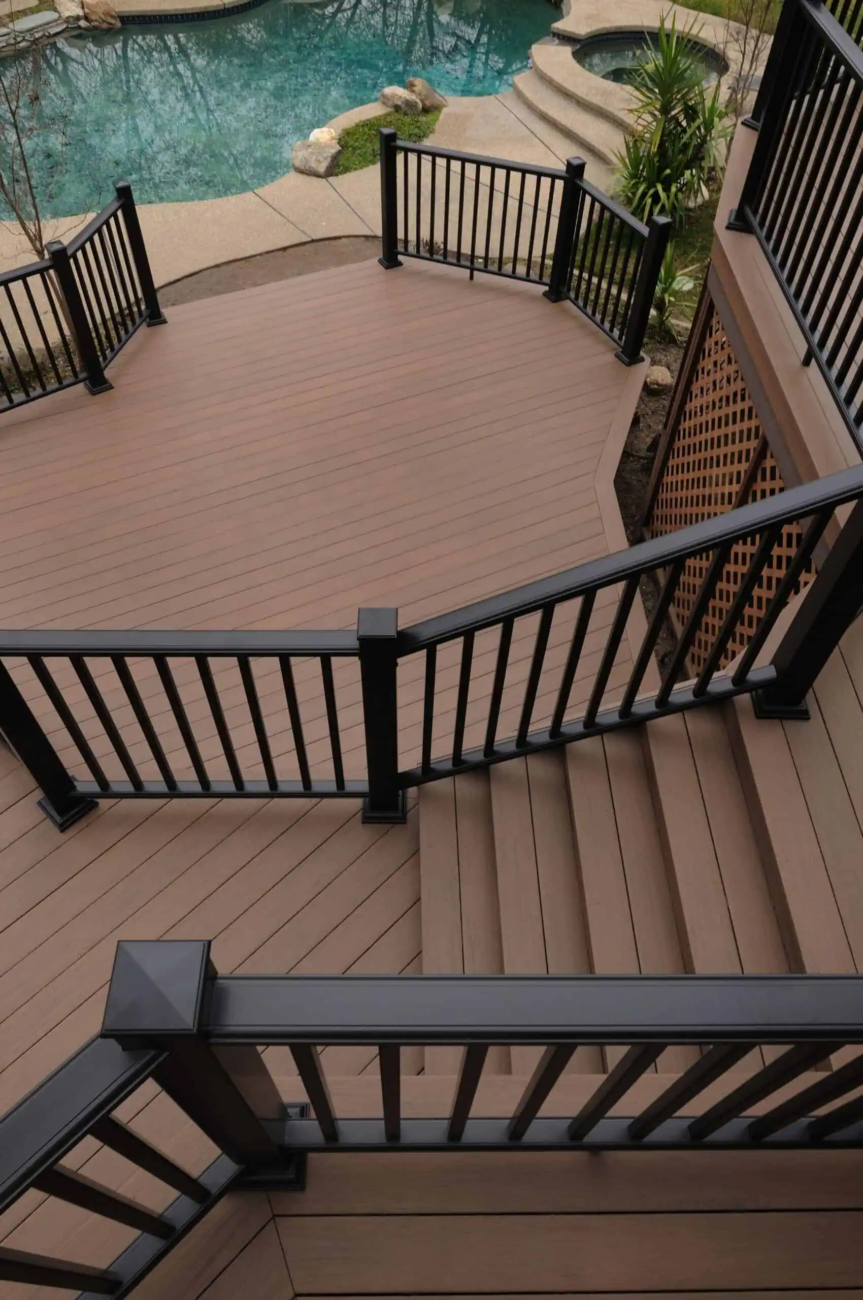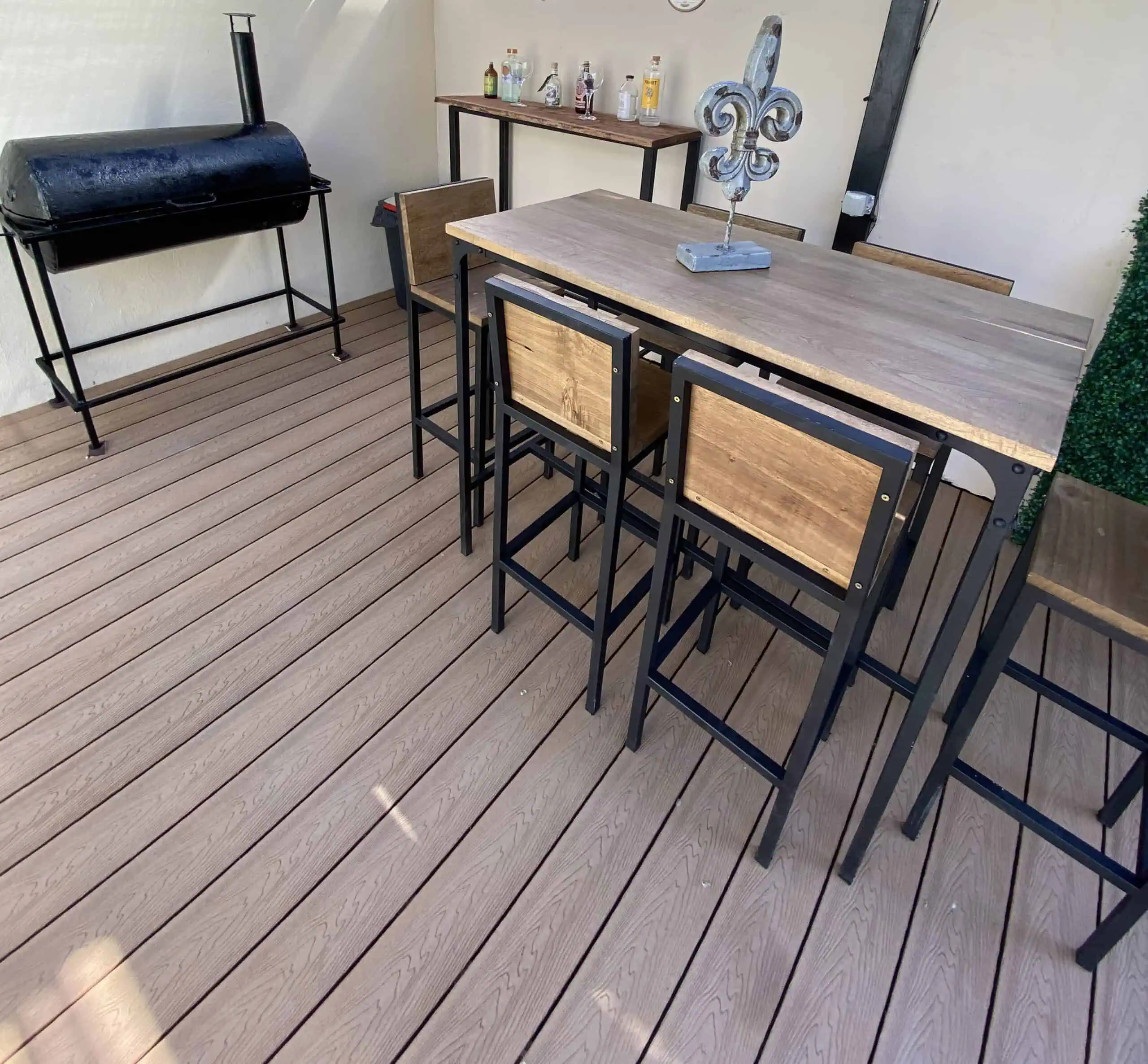 El material WPC (Wood Plastic Composite) por sus siglas en inglés es un tipo de plataforma fabricada a partir de una combinación de fibras de madera y plástico. Su apariencia es similar a la madera lo cual le da una estética super elegante.